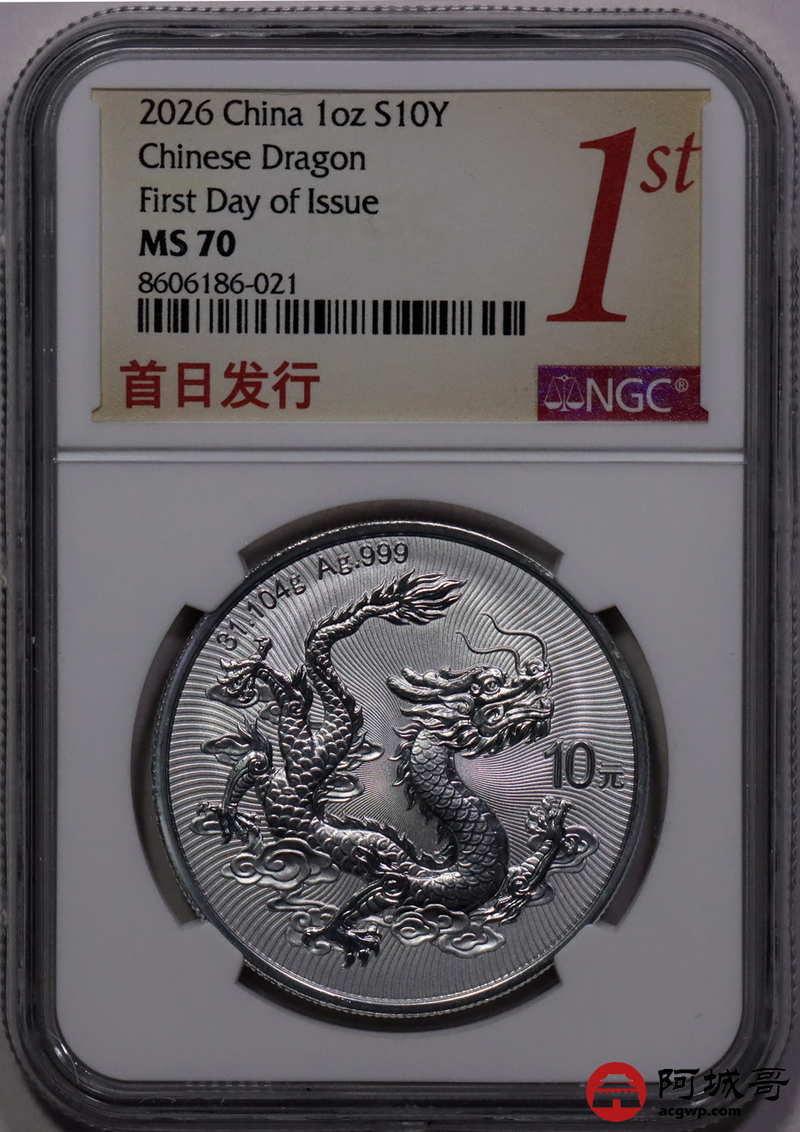 Lot:37 2026年中国龙银币NGC MS70首日倒置串号
