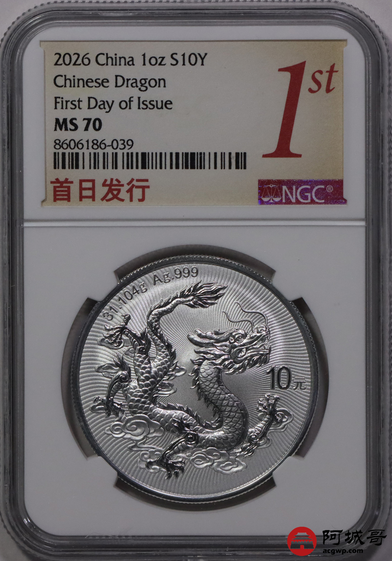 Lot:39 2026年中国龙银币 NGC MS70首日倒置串号