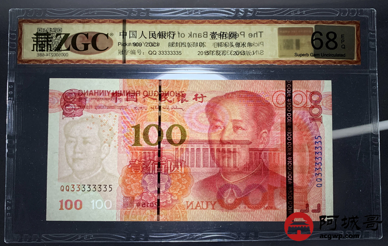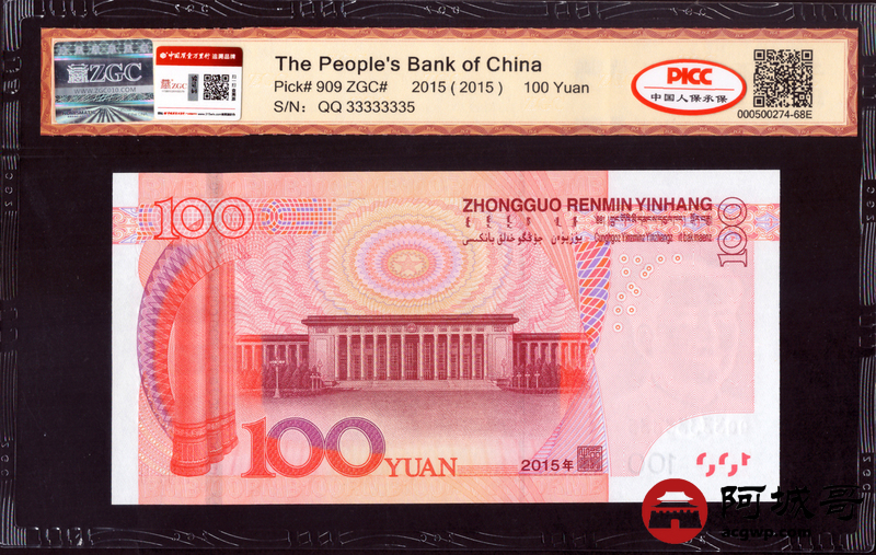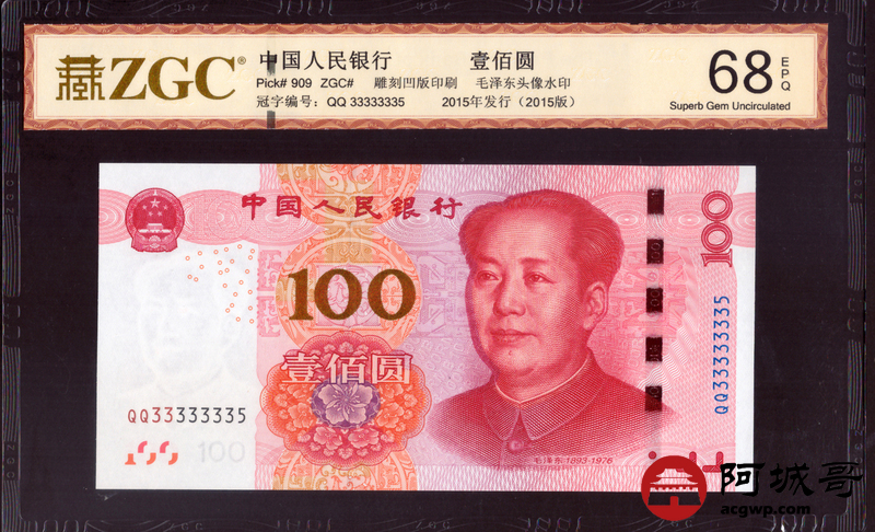 Lot:null 2015年中国人民银行壹佰元 ZGC 68EPQ