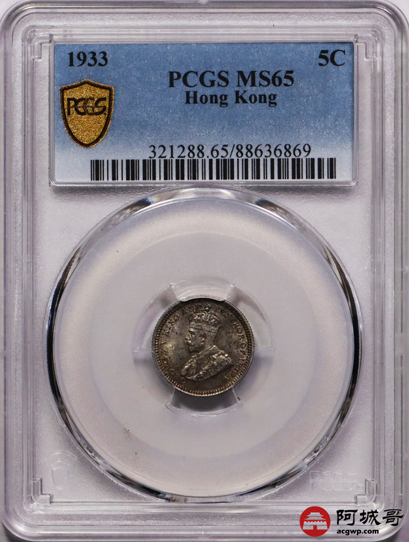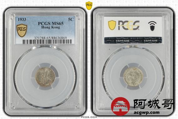 Lot:42 1933年香港五仙银币PCGS MS65