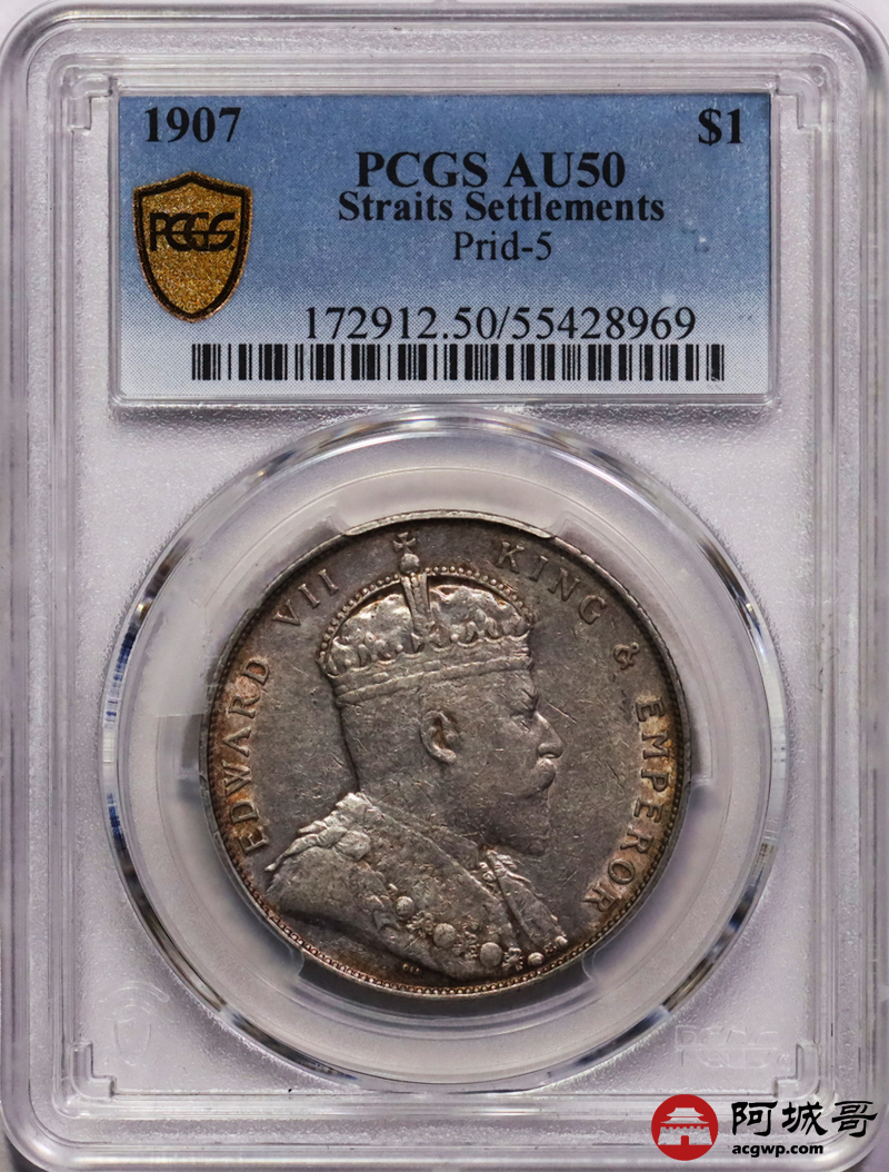 Lot:40 1907年爱德华七世壹圆 PCGS AU50