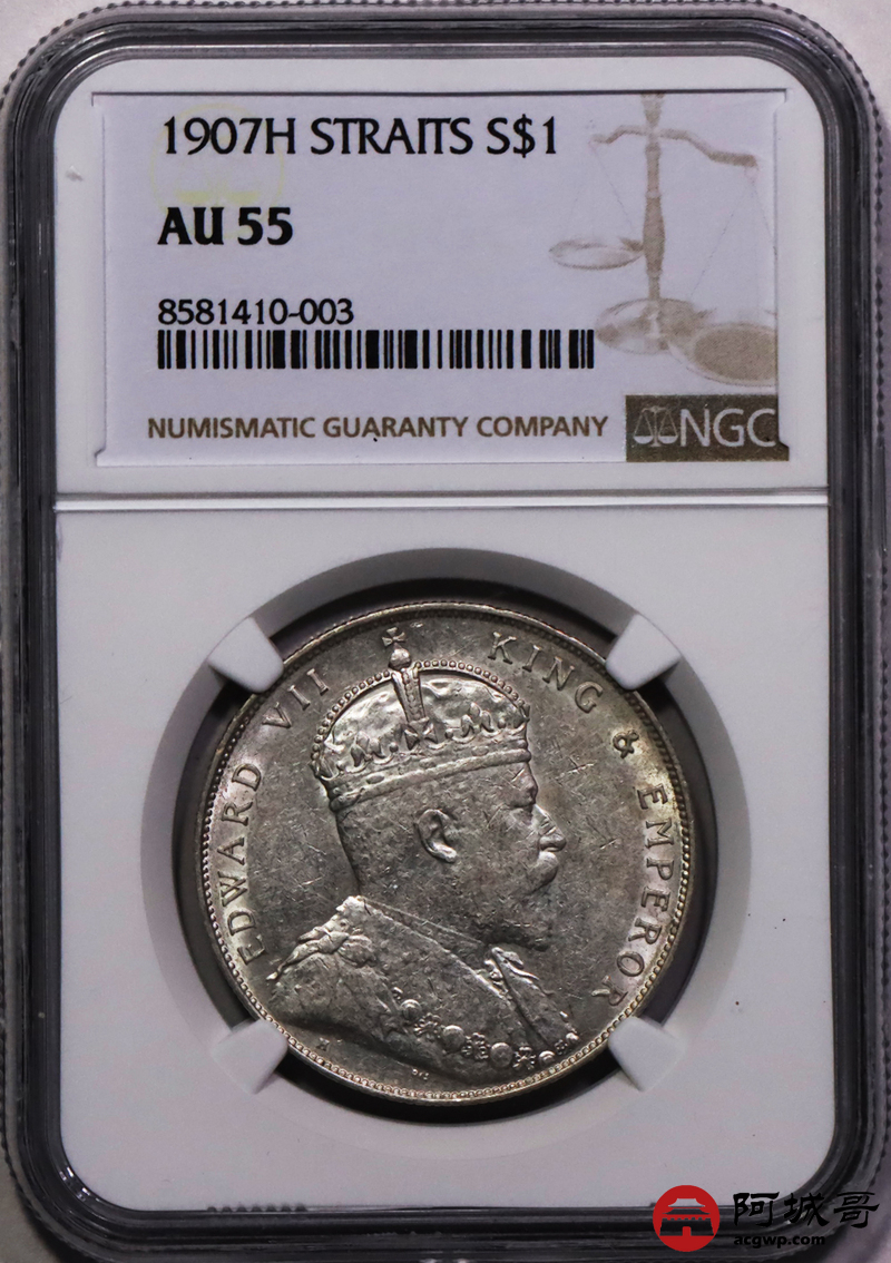 Lot:37 1907H爱德华七世壹圆 NGC AU55