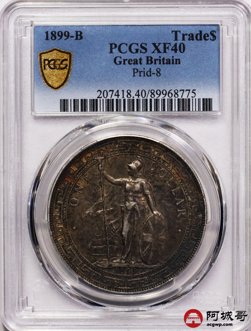 Lot:12 1899B酱彩包浆站洋壹圆 PCGS XF40
