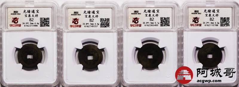 Lot:48 清-光绪通宝 宝泉大样 华夏评级 82四枚