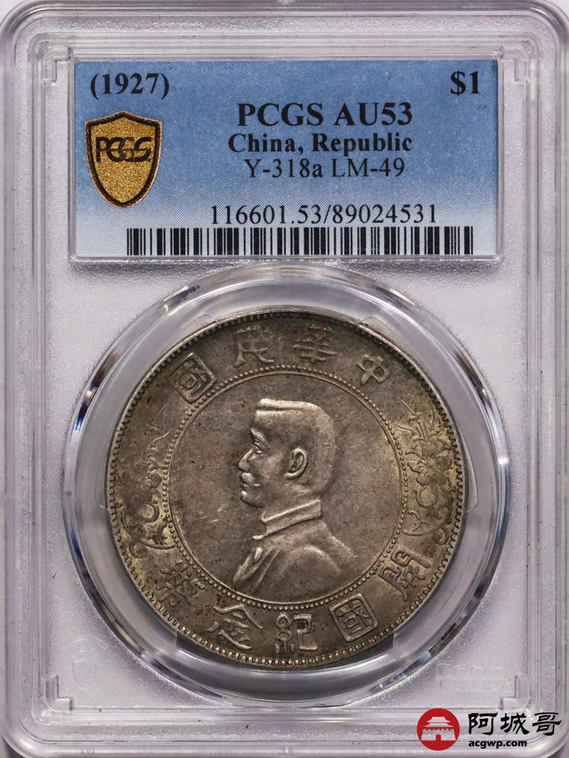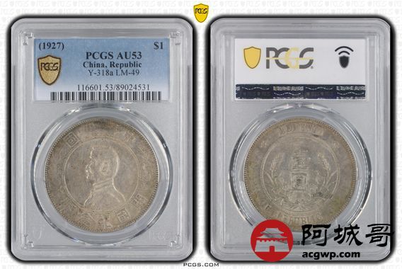 Lot:11 黄油原味 孙像小头壹圆 点草版 PCGS AU53