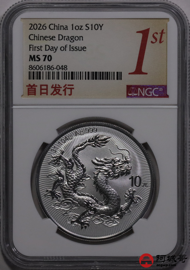 Lot:30 2026年中国龙银币NGC MS70首日 倒置串号