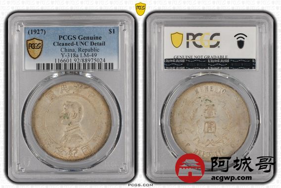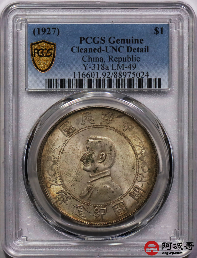 Lot:8 黄油转光 孙像小头壹圆 PCGS UNC