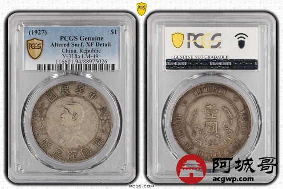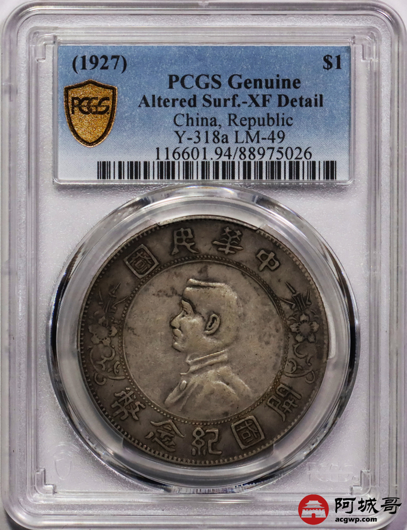 Lot:6 原味老包浆 孙像小头壹圆 PCGS XF