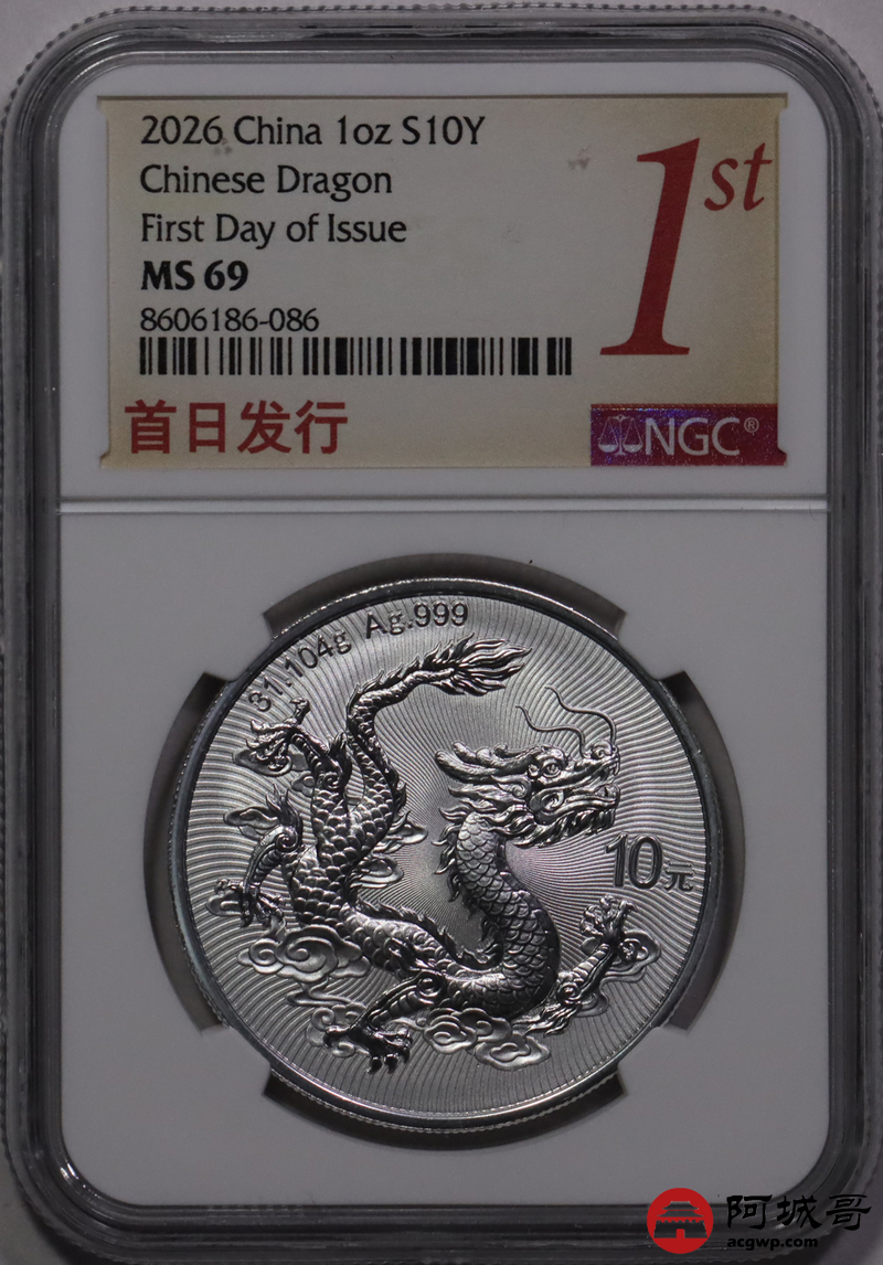 Lot:31 2026年中国龙银币NGC MS69首日 倒置串号