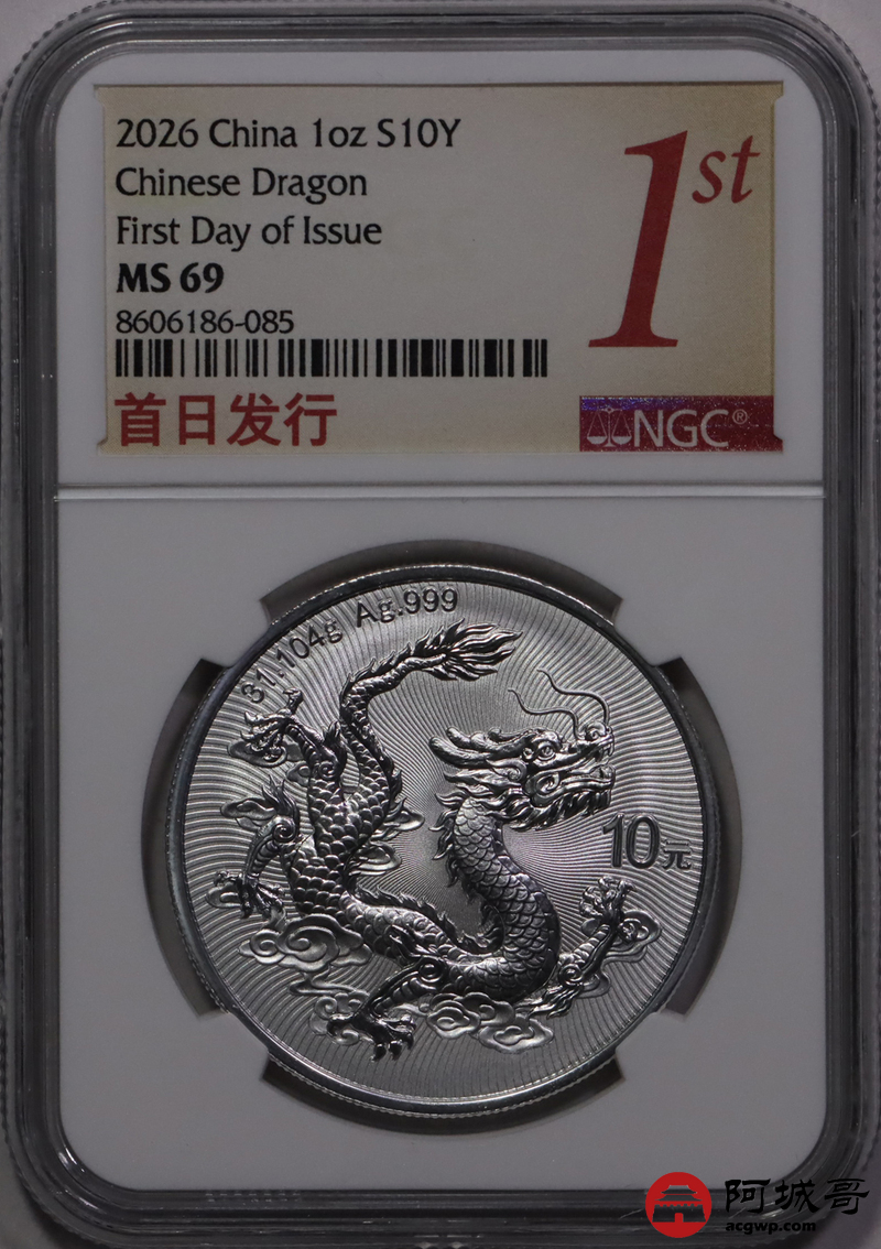 Lot:28 a2026年中国龙银币NGC MS69首日 倒置串号