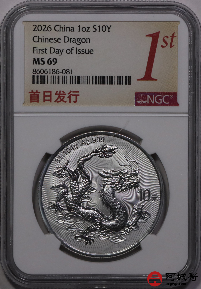 Lot:40 2026年中国龙银币NGC MS69首日 倒置串号